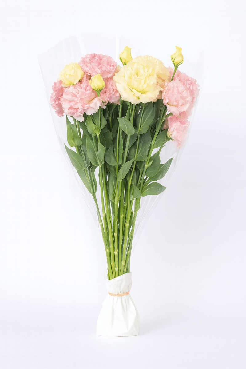 包鮮花 ~摘みたての花と生産者の想いを一緒に包んでお届けします~・十分保水するので長時間輸送も安心です・使用後は可燃ごみとして処理できます(各自治体の指導に従って破棄してください)・水分量の調整が可能になります(水の量は花の種類、本数、運送日数によって調整してください)※水の入れすぎや袋を横にした時など水があふれる場合がありますのでご注意ください。 使用方法 販売規格 包鮮花 ポリ入り 包鮮花300 2025年10月発売予定です